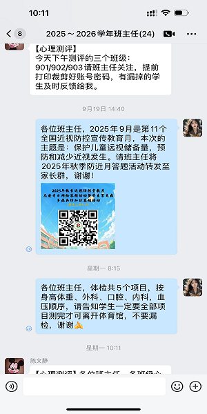 本次“防近月”宣传教育活动,覆盖面广,参与度高,形式多样,内容充实,使全校师生对近视防控的认识得到了普遍提高,爱眼护眼的自觉性显著增强。活动进一步规范了学生的用眼行为,营造了人人重视视力健康的良好氛围。我校将视力健康管理融入日常教育教学和管理各环节,持续加强宣传教育,严格制度落实,切实筑牢学生视力健康防护墙,为学生的光明未来保驾护航。